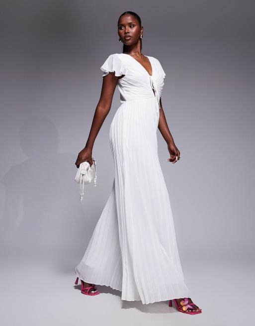 TFNC pleated wide leg jumpsuit with keyhole detail in cream