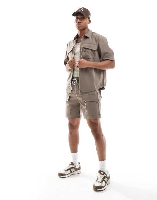 The Couture Club co-ord nylon zip through utility shirt in brown
