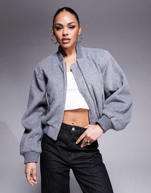 The Couture Club shoulder pad wool look bomber jacket in grey marl