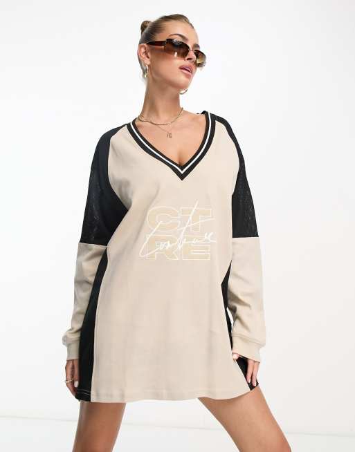 The Couture Club v neck contrast mini sweater dress in beige