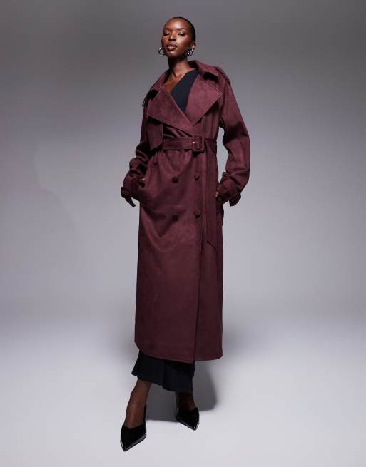 The Frolic exclusive faux suede oversized collar detail belted trench coat in plum