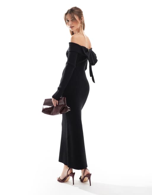 The Frolic exclusive knitted bardot bow back detail maxi dress in black