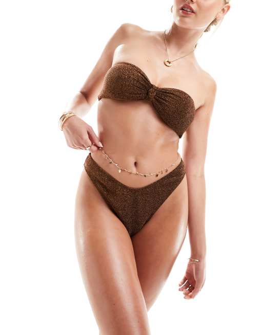 The Frolic exclusive serenity high leg bikini bottom in dark chocolate glitter