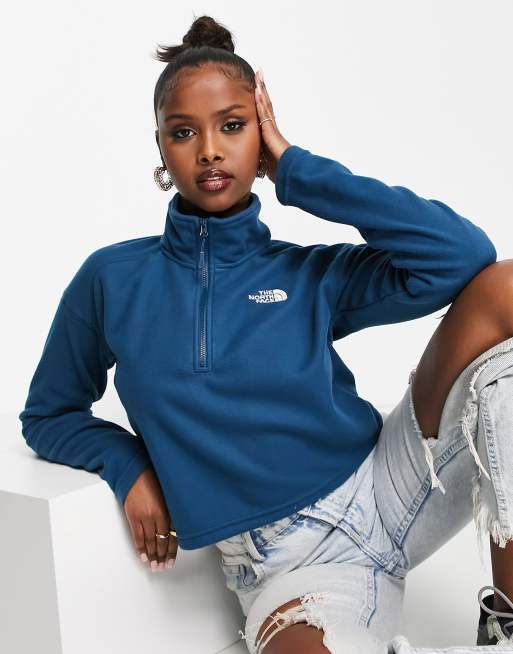 The North Face 100 Glacier 1/4 zip cropped fleece in navy