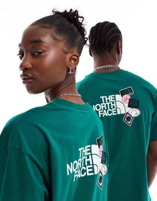 The North Face Expedition Stickers backprint oversized t-shirt in dark green exclusive to ASOS