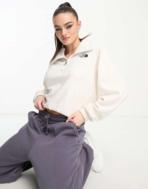 The North Face Glacier wide neck boxy 1/4 zip fleece in cream Exclusive at ASOS