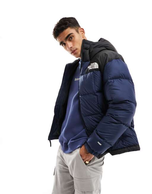 The North Face Lhotse hooded down puffer jacket in navy and black