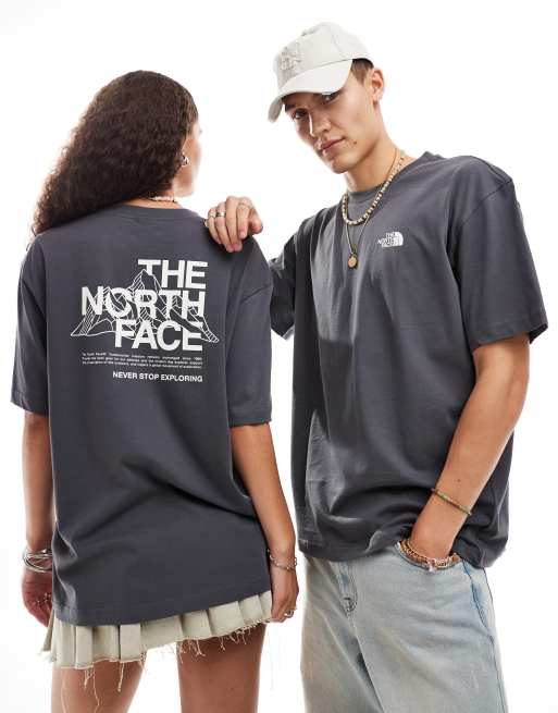 The North Face Mountain Sketch back print oversized t-shirt in washed grey