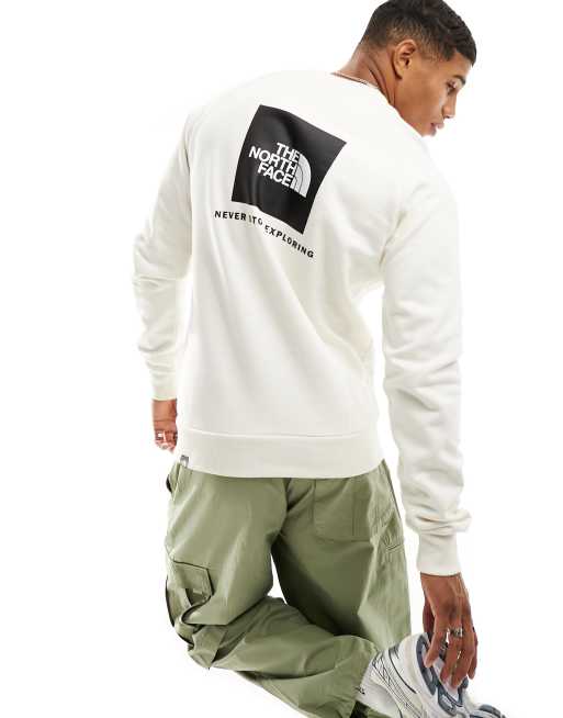 The North Face Redbox raglan sleeve back print fleece sweatshirt in off white