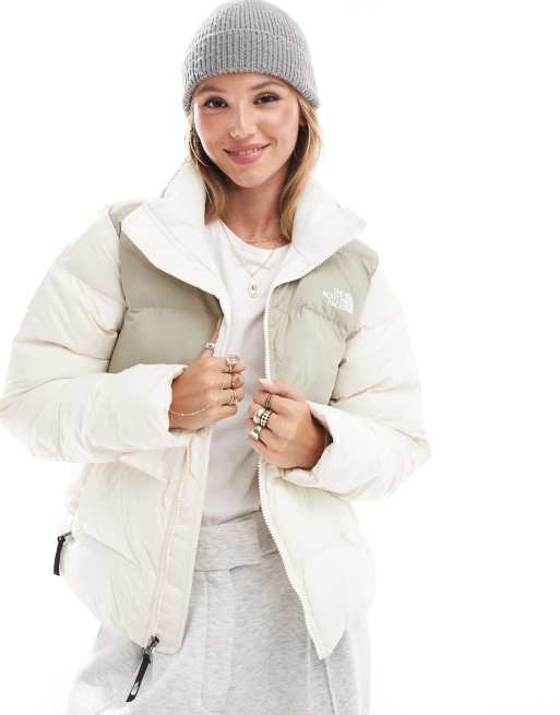 The North Face Saikuru cropped puffer jacket in off white