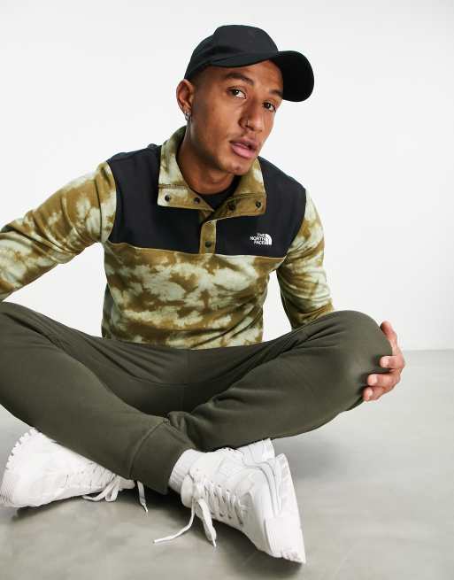 The North Face TKA Glacier snap neck fleece in green tie dye