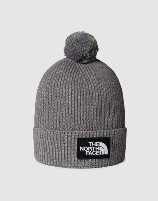 The North Face Tnf logo box pom beanie in tnf medium grey heather