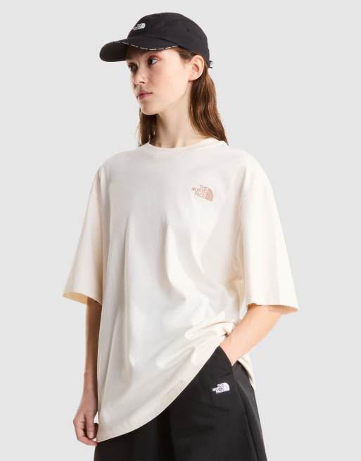 The North Face U flower logo oversized ss tee in white dune/mushroom gre