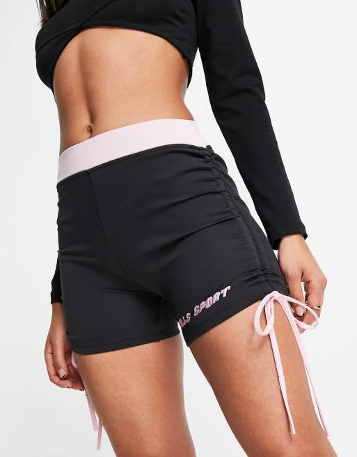 ODolls Collection sportswear motif ruched side booty shorts in black