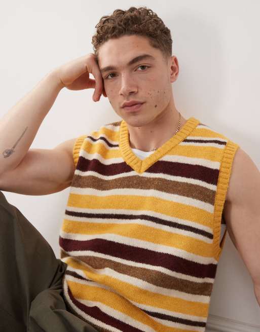 The Ragged Priest Billy knit vest in yellow fuzzy stripe