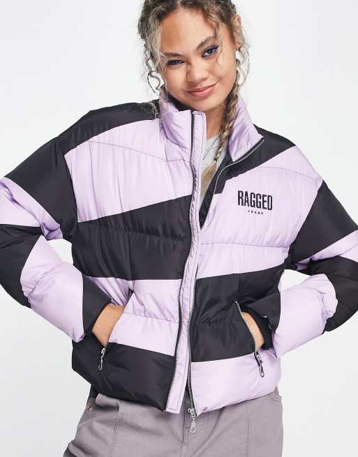 The Ragged Priest cropped puffer coat with trippy heart print back in multi