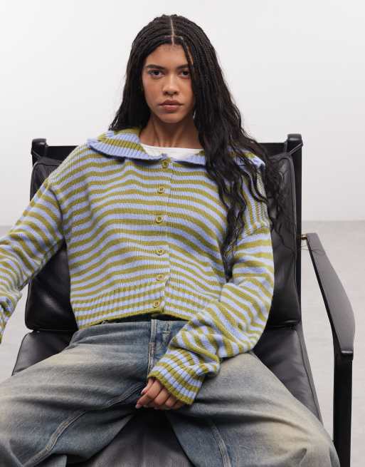 The Ragged Priest darling sailor collar cardigan in green blue stripe