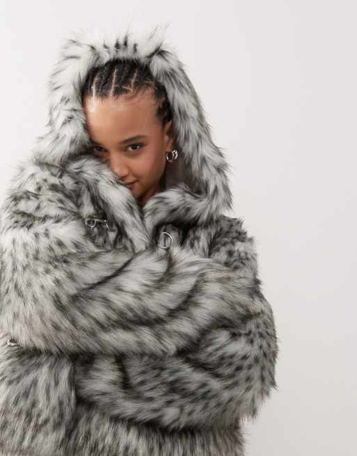 The Ragged Priest faux fur hooded jacket with hardware fastening in white