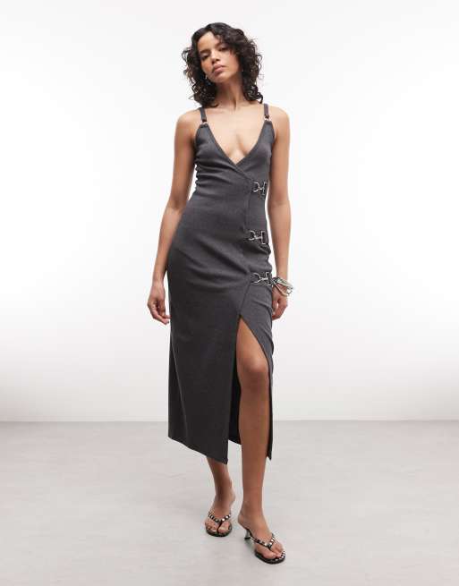 The Ragged Priest wrap clasp maxi dress in washed charcoal