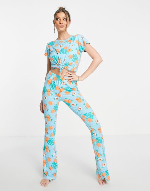 The Wellness Project flared long pyjama set in tropical fruit print