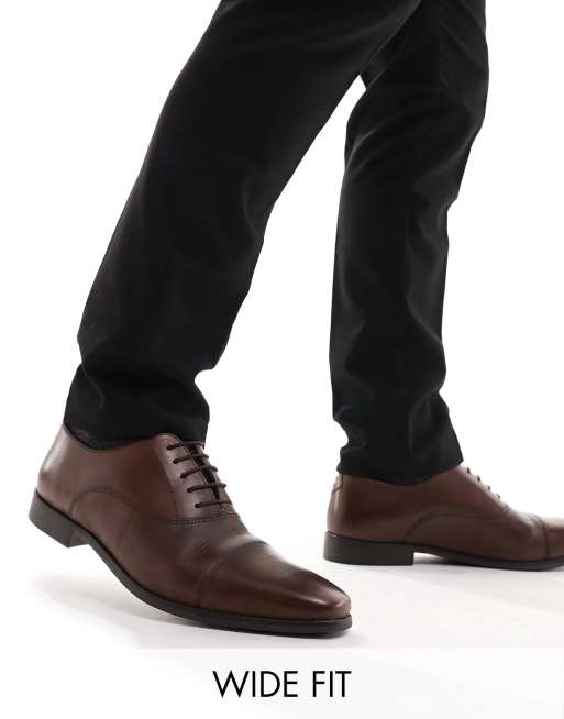 Thomas Crick wide fit leather oxford lace up shoes in brown