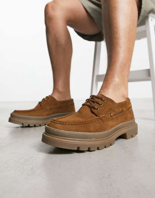 Thomas Crick chunky boat shoe lace up shoes int tan suede