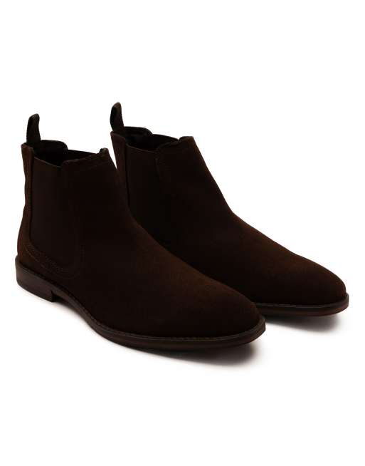 Thomas Crick Griffin suede leather chelsea boot in brown