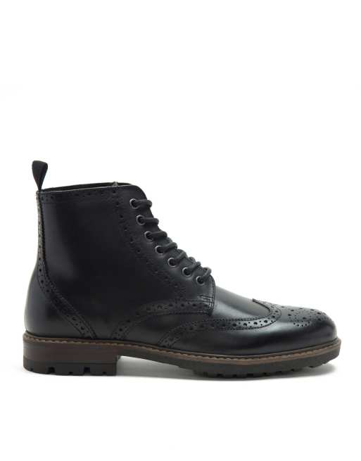 THOMAS CRICK NESSER brogue lace-up leather ankle boots in black