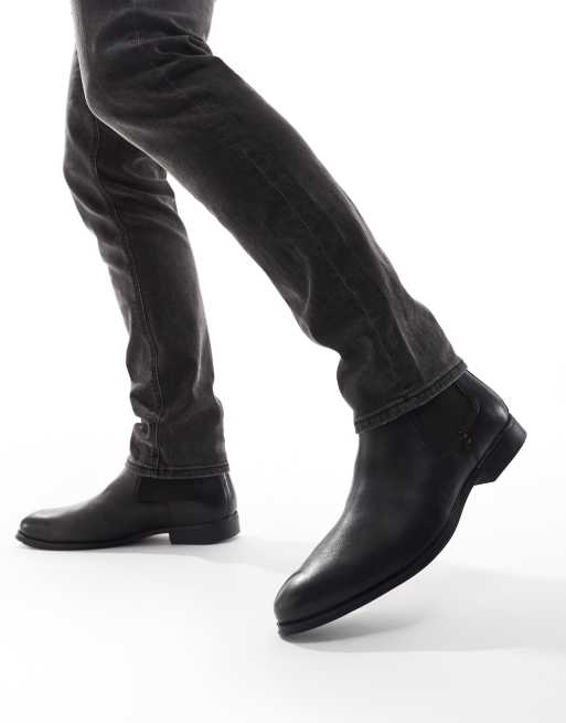THOMAS CRICK REGGIE formal leather chelsea zip boots in black