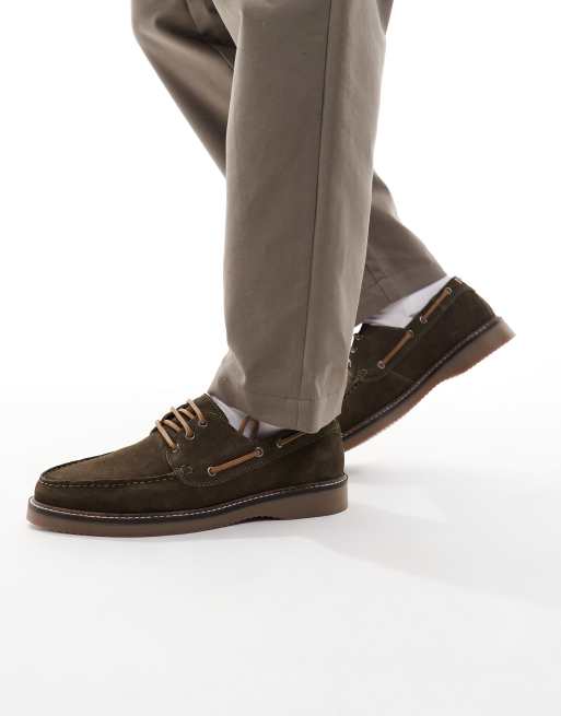 Thomas Crick Thomas crick 'triggs' men's suede casual lace-up boat shoes in dk olive