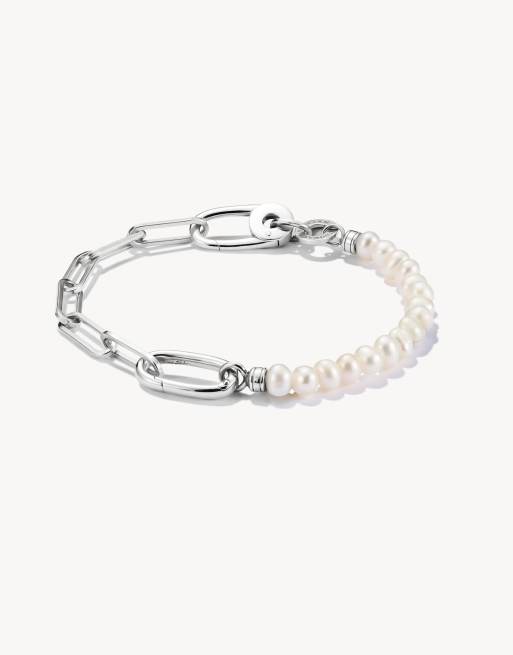 Thomas Sabo Charm bracelet paperclip an pearls with connect link silver in silver, white