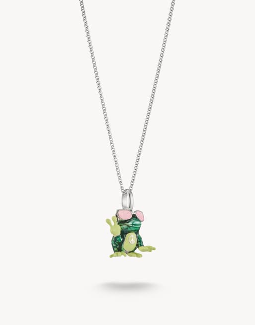 Thomas Sabo Frog Pendant Necklace in silver, green and pink