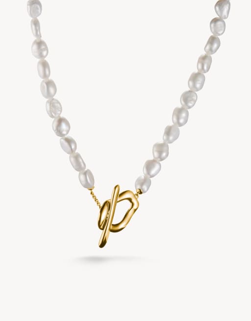 Thomas Sabo Gold-plated pearl necklace natural beauty in yellow gold, white