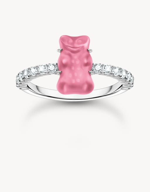 Thomas Sabo Silver ring with pink mini sized goldbears and zirconia in silver, pink, white - SILVER