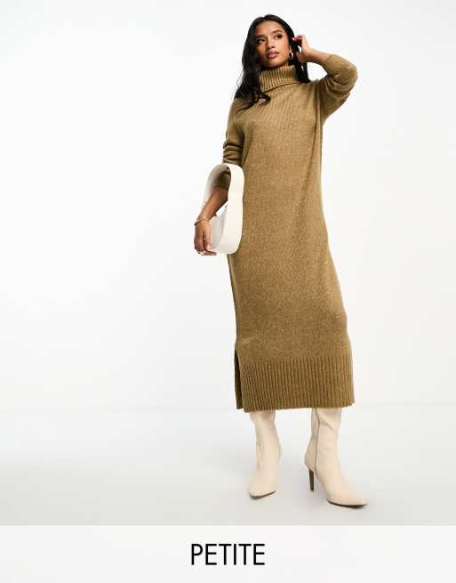 Threadbare Petite Skylar roll neck oversized maxi jumper dress in taupe