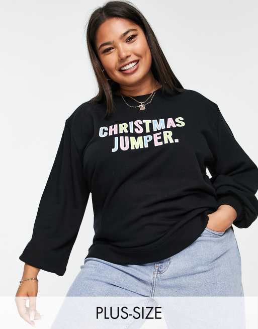 Threadbare Plus Christmas multicoloured printed sweater in black