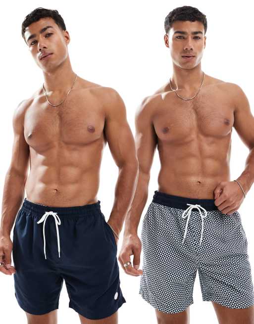 Threadbare 2 pack geometric print swim shorts in navy