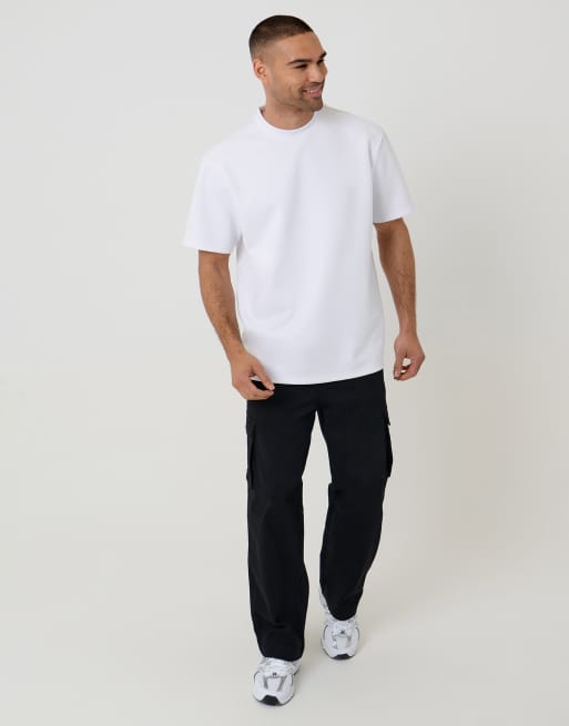 Threadbare Baggy fit stretch cotton cargo trousers in black