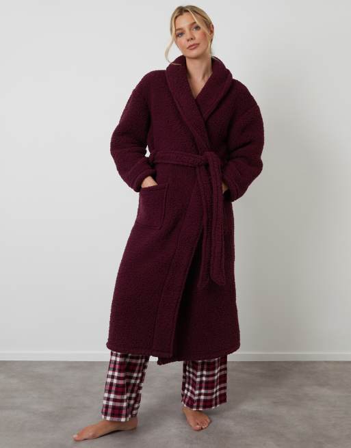 Threadbare Borg dressing gown in wine