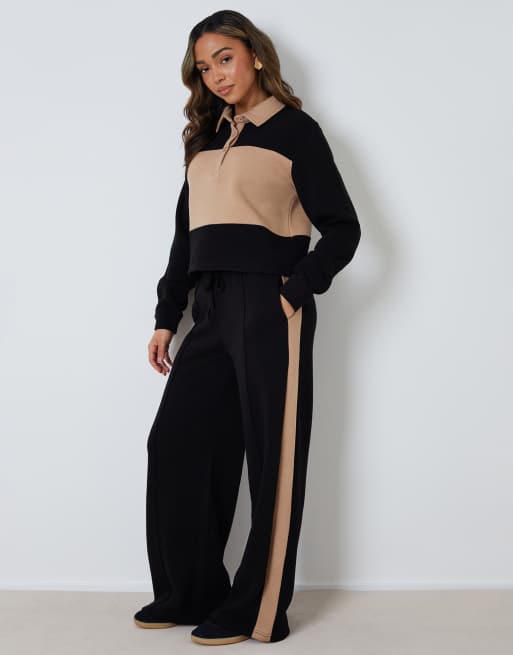 - Contrast side stripe on joggers