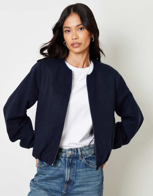 Threadbare Brushed bubble hem bomber jacket in navy