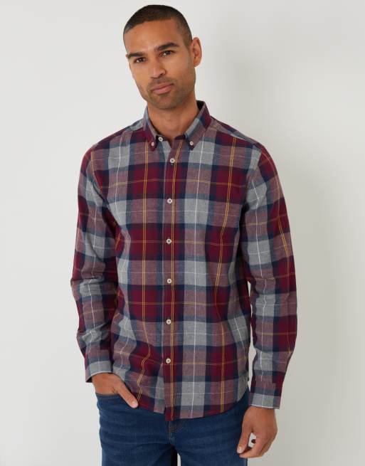 Threadbare Brushed flannel check long sleeve shirt in wine