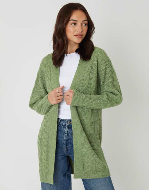 Threadbare Cable knit cardigan in pale green