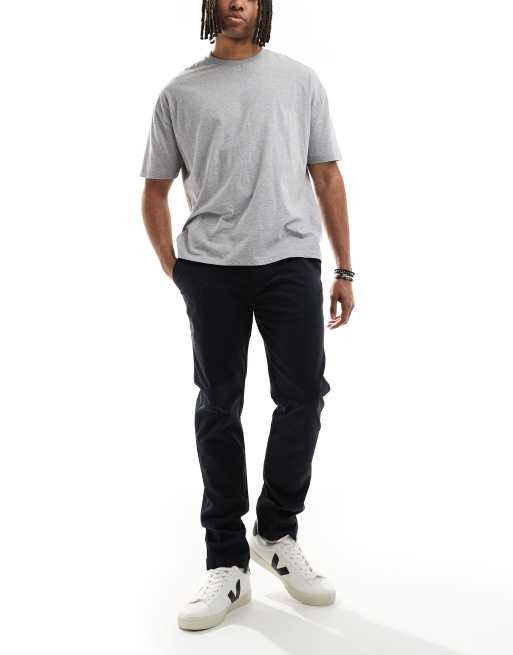 Threadbare 'castello' cotton slim fit chino trousers with stretch in black