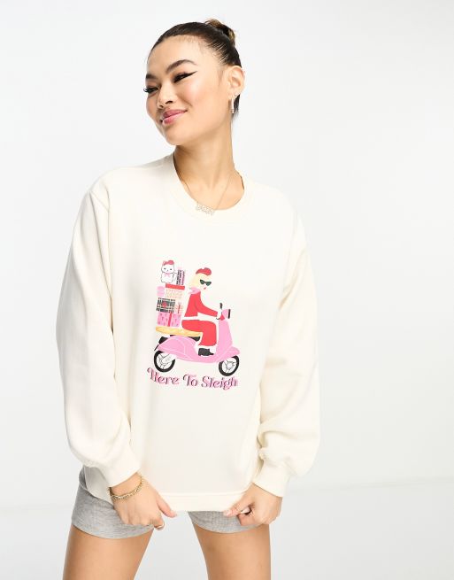 Threadbare Christmas printed sweater in ecru