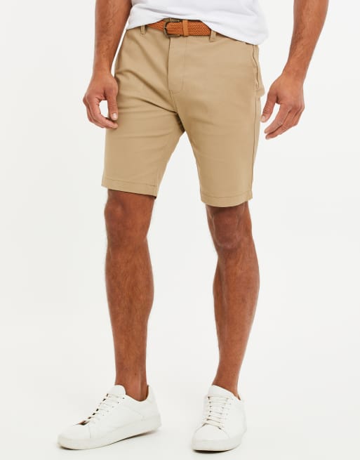 Threadbare 'conta' cotton turn-up chino shorts with woven belt in stone