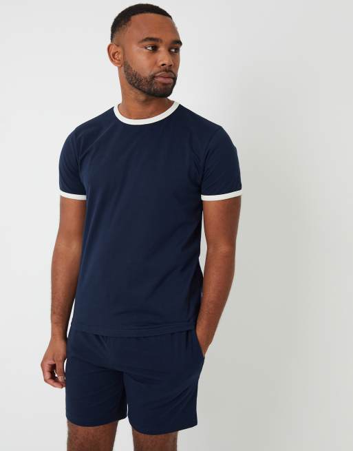 Threadbare Contrast binding short lounge set in navy