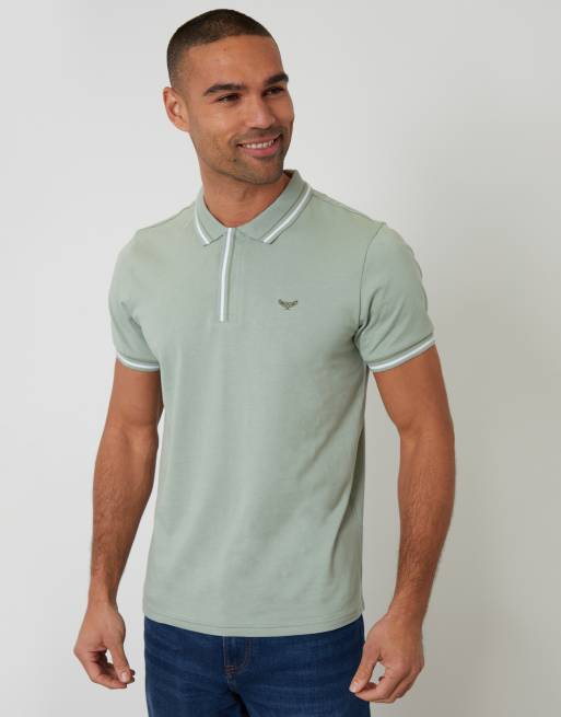 Threadbare Contrast tipping cotton jersey polo shirt in pale green