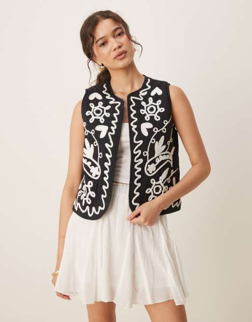 Threadbare Cornelli embroidered gilet in cream