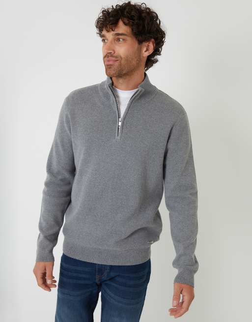 Threadbare Cotton blend knitted quarter zip jumper in grey